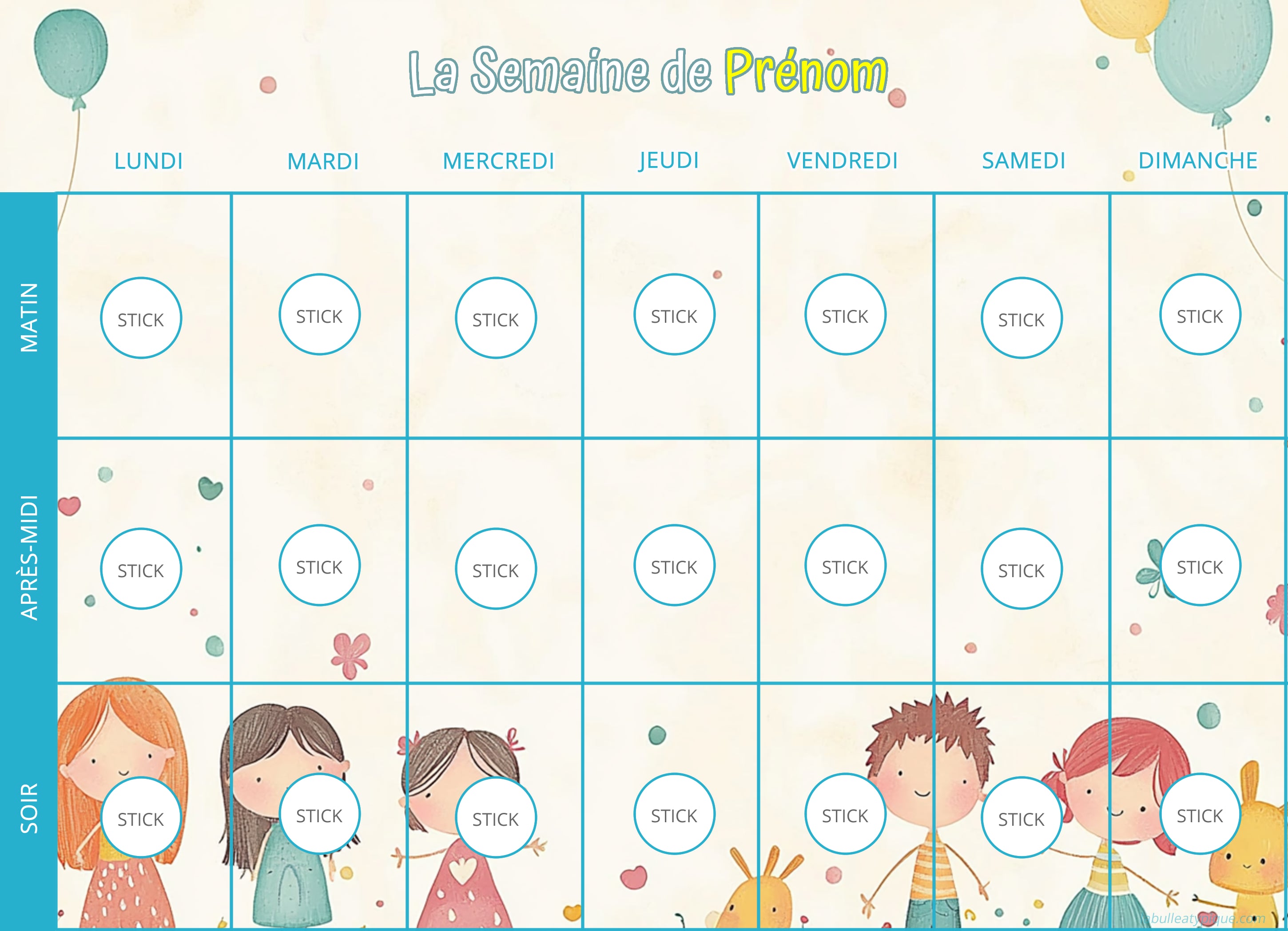 Visual Weekly Planner - 96 Pictograms - Complete Blue Personalized Kit