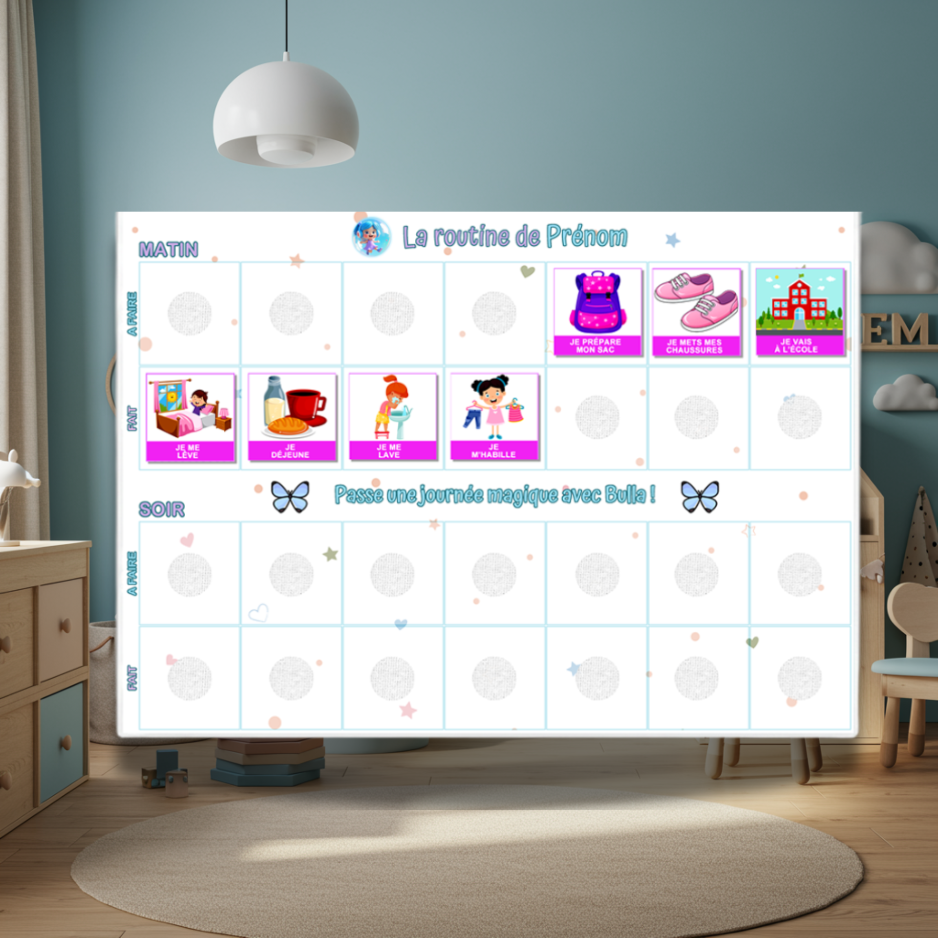 Interactive Daily Routine - 24 Pictograms - Complete Personalized Pink Kit