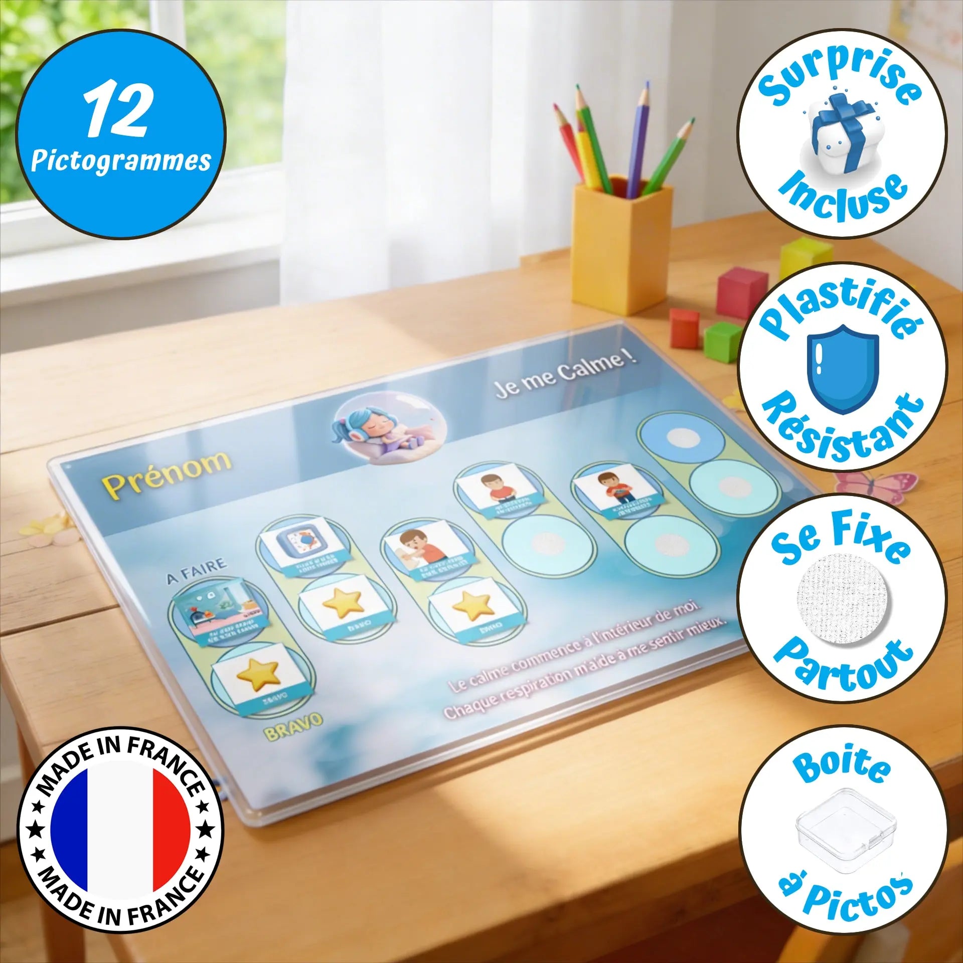 ✔️ Pictogrammes rigides plastifiés (actions, étoiles bonus, récompenses)
